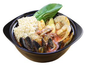 중화 튀긴 누룽지, 볶음야채와 해물, 토마토 로제짬뽕소스로 조리한