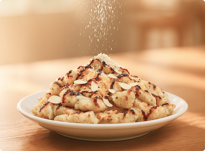 탕수육의 바삭함과 고소함을 한층 더 높인 튀김칩 기술이 들어있는 찹쌀 탕수육 튀김분말.