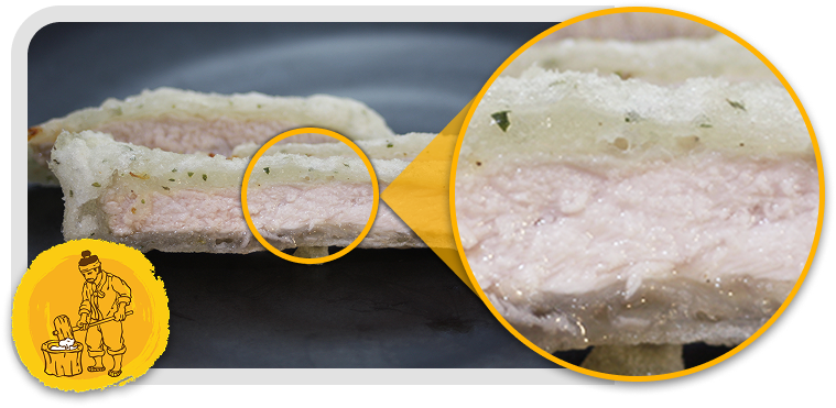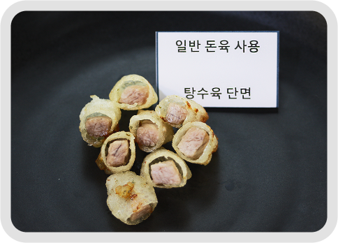 [육즙증발 최소화 육즙보존 육막 숙성 기술 탕수육 단면]